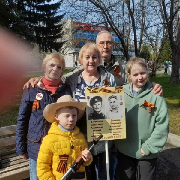 В семье юного спортсмена МБУДО СШ гимнастики им.Р.Кузнецова, Талецкого Глеба, есть добрая традиция - ежегодно всем вместе ходить на Парад победы 9 мая, выражая тем самым почтение памяти своих доблестных предков: рядового 5-го Сибирского стрелкового полка Богомолова А.А. и красноармейца 361 Шелетовской трижды орденоносной стрелковой дивизии Данилюка В.К.